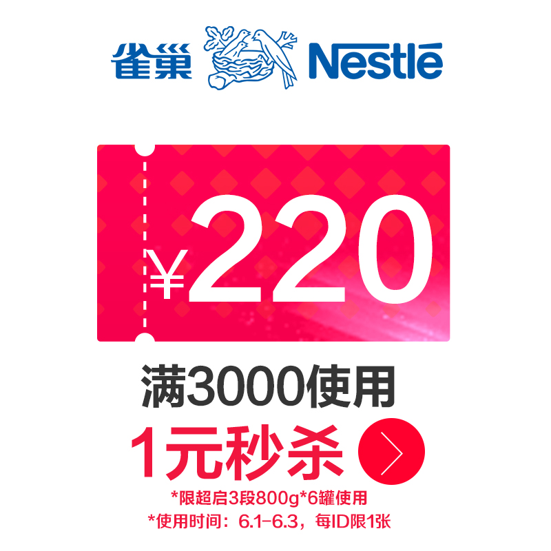 雀巢母婴官方旗舰店满3000元-220元指定商品优惠券06/01-06/03热门设计联盟服务商