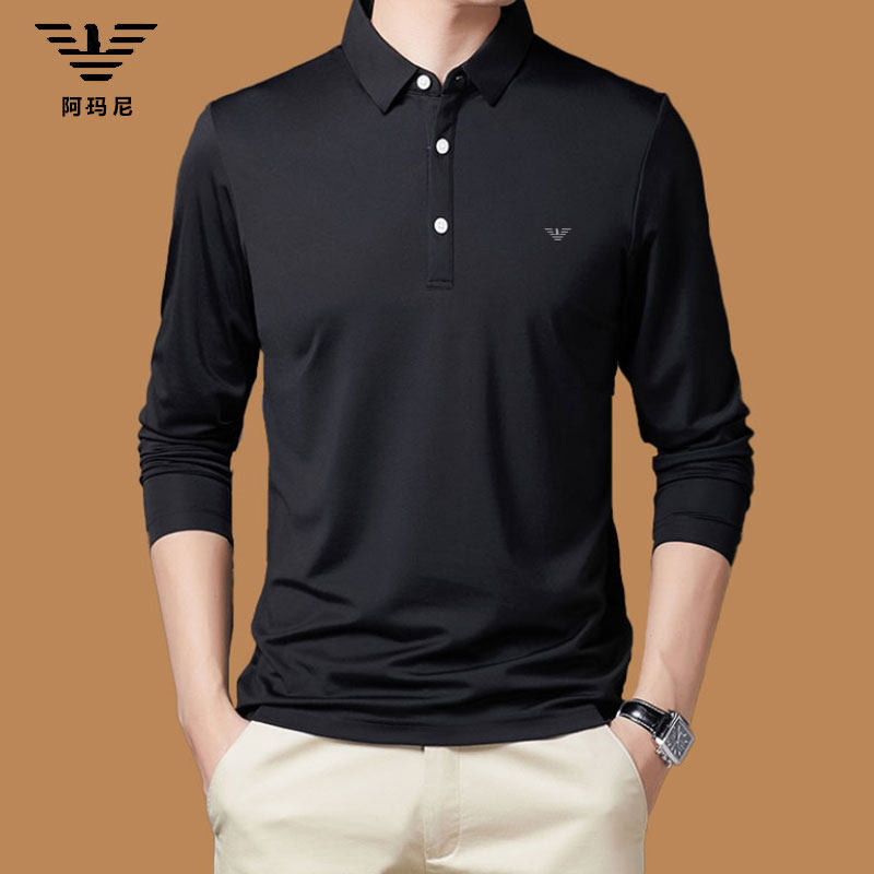 乔奇阿玛尼秋季新款纯色翻领长袖t恤男商务中青年休闲polo衫正品热门设计联盟服务商
