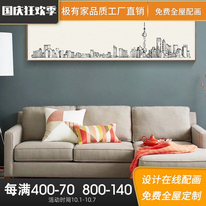 圣仕北欧客厅装饰画现代简约卧室床头有框横幅挂画书房办公室建筑热门设计联盟服务商