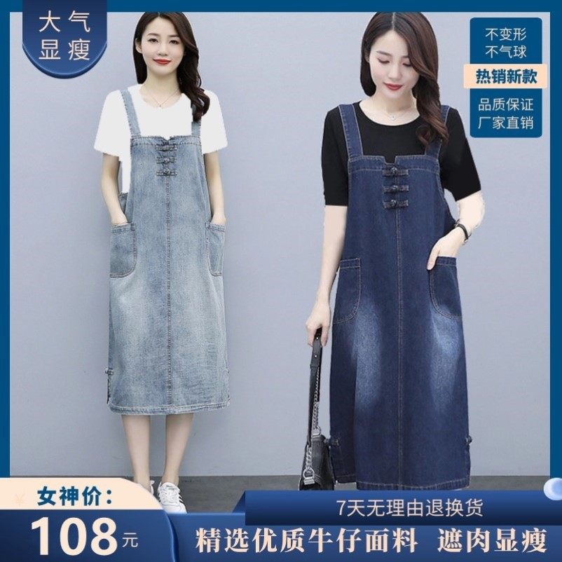 花有清香服饰厂家直销SGCR牛仔连衣裙宽松背带裤复古显瘦牛仔长裙热门设计联盟服务商