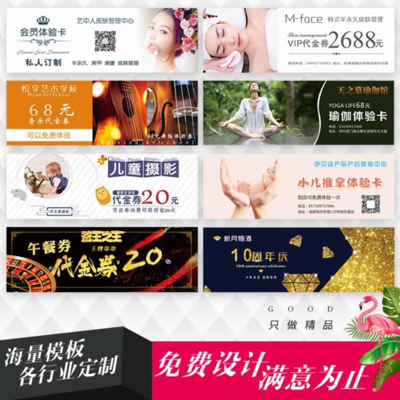 制作设计美容院体验劵烘焙定做积分卡礼品超市抵用劵名片蛋糕卡。热门设计联盟服务商
