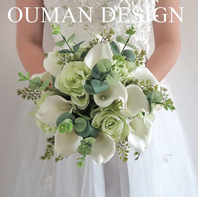 。2020欧美白绿马蹄莲结婚婚礼新娘仿真花森系花束婚纱摄影手捧花热门设计联盟服务商
