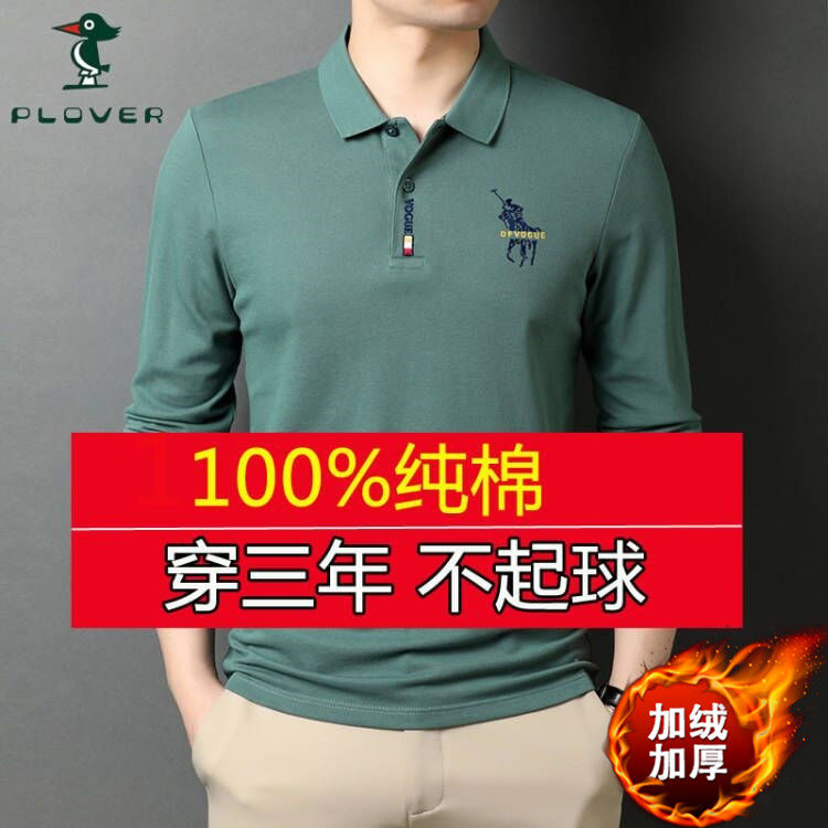 啄木鸟男士长袖t恤加绒加厚翻领冬季商务纯棉polo衫男装打底上衣热门设计联盟服务商