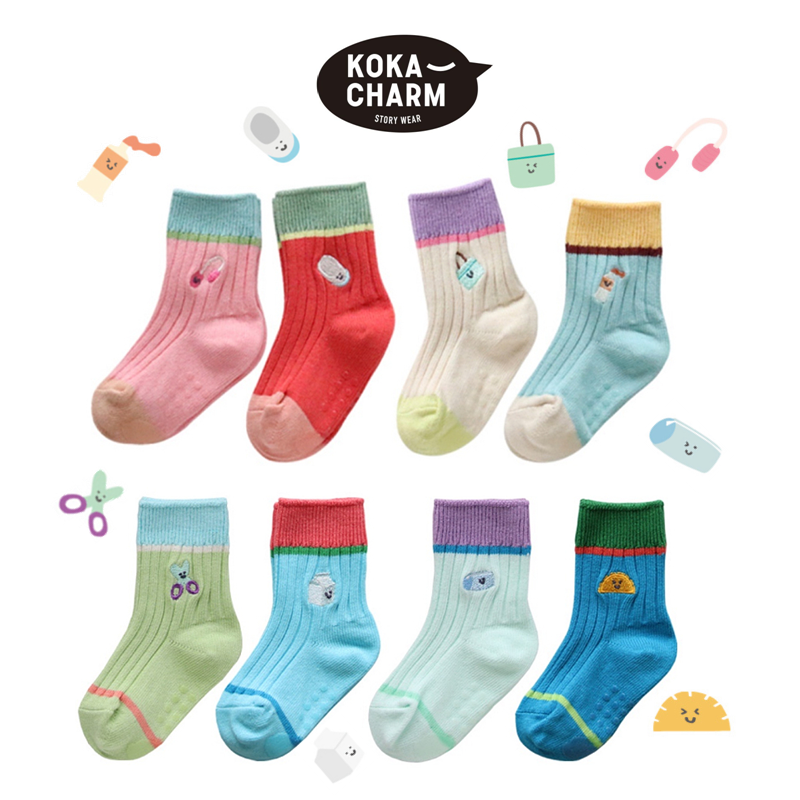 新品现货 韩国童装kokacharm儿童宝宝拼色小图标帖色短袜/袜子热门设计联盟服务商