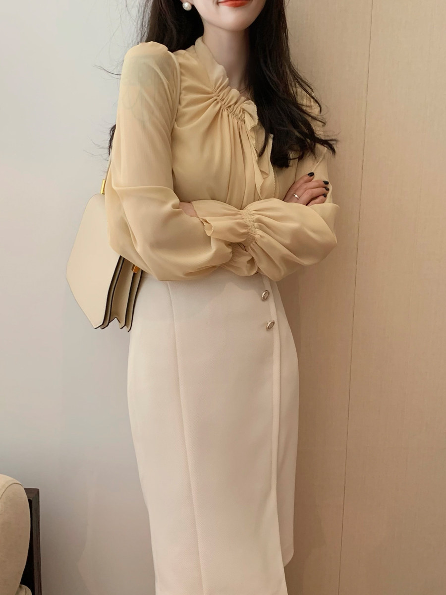 DAJO'S红标系列/打揽对丝木耳边通勤lady衬衫女上衣设计感女小众热门设计联盟服务商