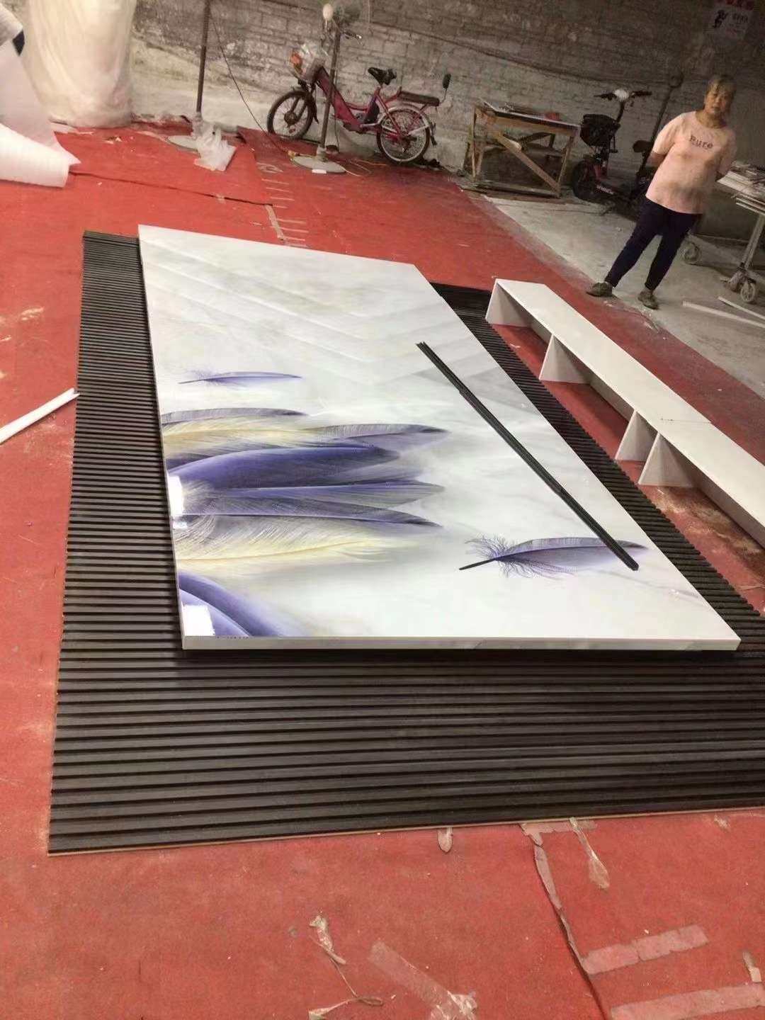 岩板悬空电视背景墙木格栅大理石瓷砖现代轻奢客厅影视墙抽屉地台热门设计联盟服务商