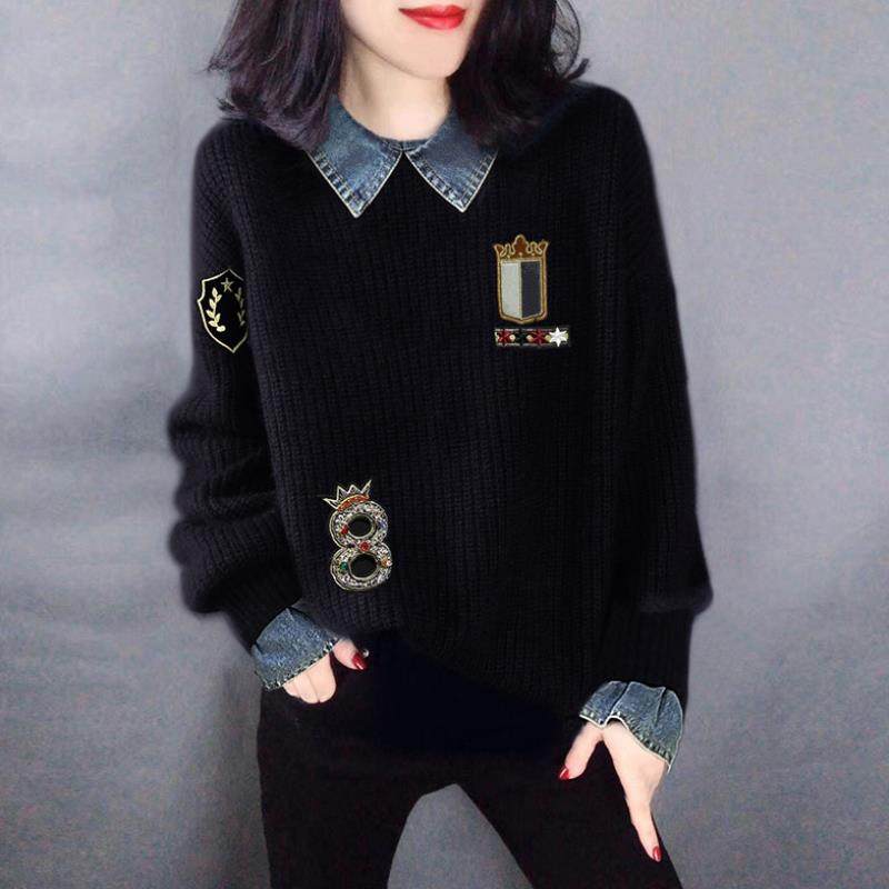 欧货水貂绒毛衣女设计感秋冬外穿2021新款宽松假两件牛仔领针织衫热门设计联盟服务商
