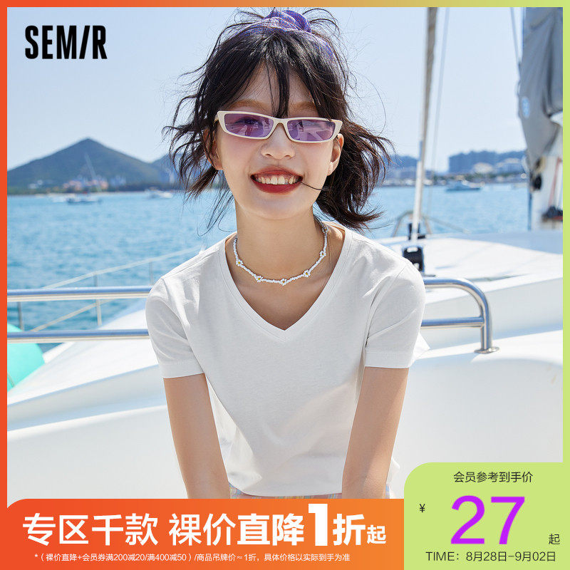 森马短袖T恤女2021夏季新款V领设计感纯色上衣韩版潮流ins打底衫热门设计联盟服务商