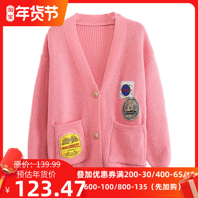 高端她系列V领宽松时尚贴图大版百搭针织衫2022秋冬装新品牌折扣热门设计联盟服务商