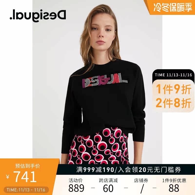 Desigual秋冬女新款通勤潮流刺绣设计LOGO直筒圆领长袖毛针织衫热门设计联盟服务商