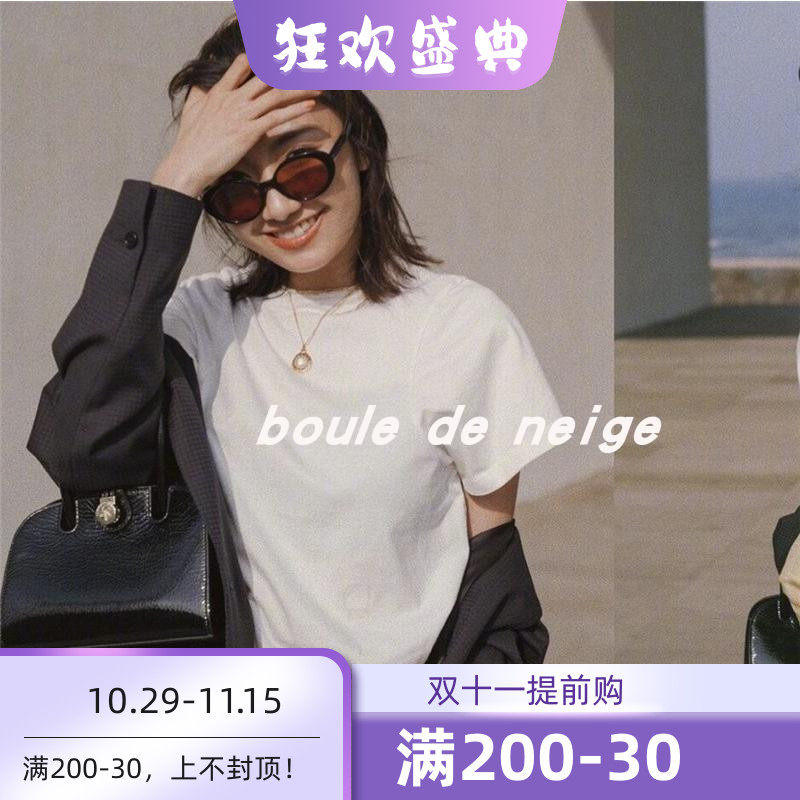 北欧小众弧形窄肩设计简约显瘦80S高支有机棉logo刺绣圆领短袖T恤热门设计联盟服务商