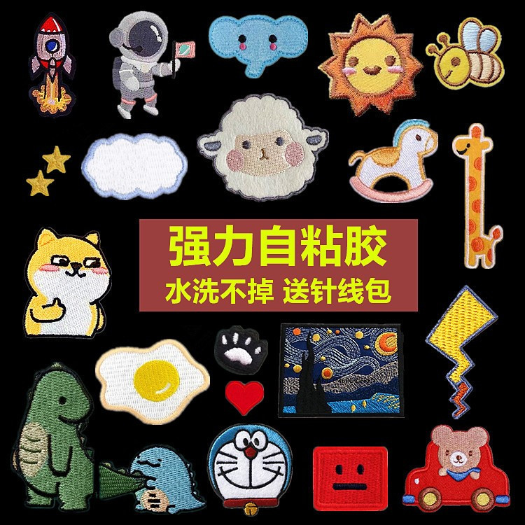 时尚可爱卡通布贴衣服鞋子自粘刺绣小补丁贴羽绒服修财洞装饰贴